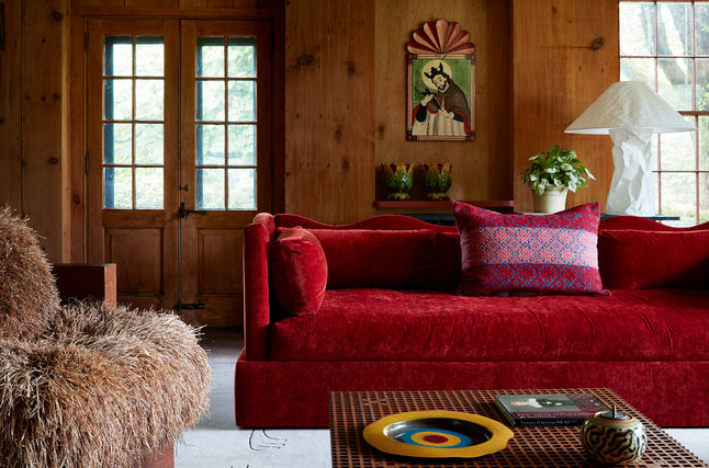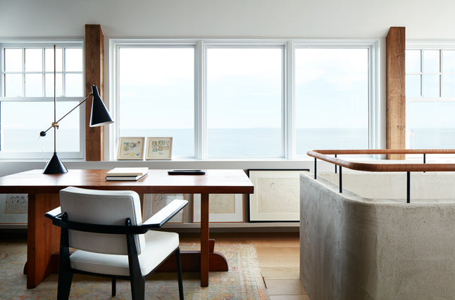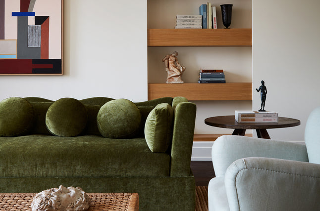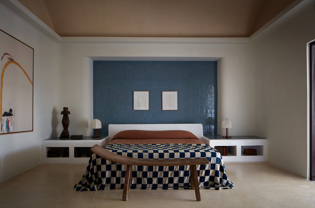 A private villa nestled into the cliffside above Gouverneur Beach offers a journey into color and pattern — a deeply personal departure from the expected, generous in its openness. The organic forms of the lush surrounding flora lend modernist contours a jolt of Caribbean flavor: a 700-piece ceramic mural constellating the ceiling; a daybed that unfurls like the vast cove below, and recalls its crystalline color; bands of confetti terrazzo stone turn the concrete flooring into a joyful dance.